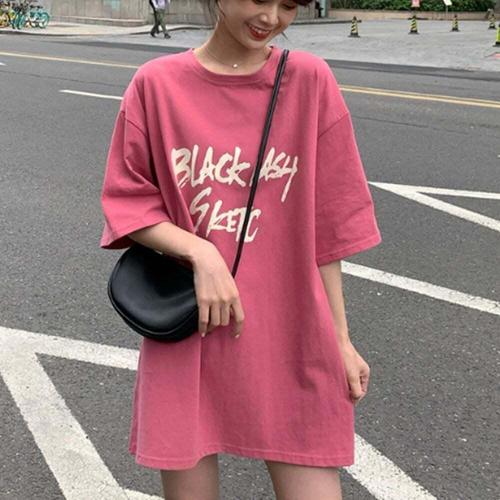 [셀럽하우스]여성 VJAR4873 핑크색 박시핏 롱 반팔티 여름 스트릿 20대