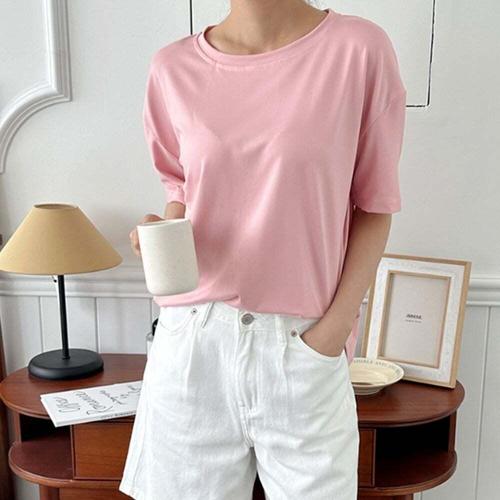 [엄지척]여자 핑크색 여름반팔티 데일리 외출 기본 20대_19610276_667501