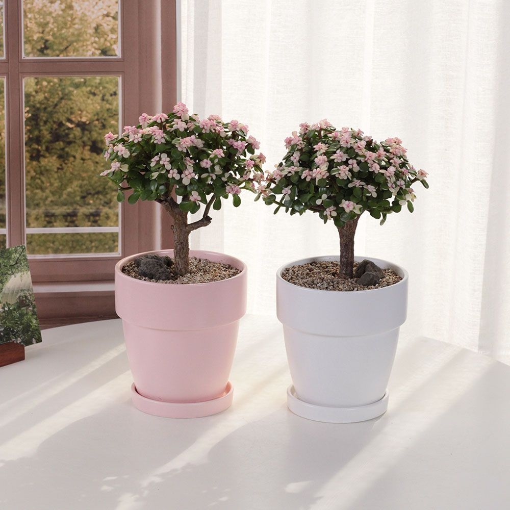 은행목 핑크아악무 달항아리 토분 세트 - 기쁜소식에 풍요와 복을 담아 선물하세요