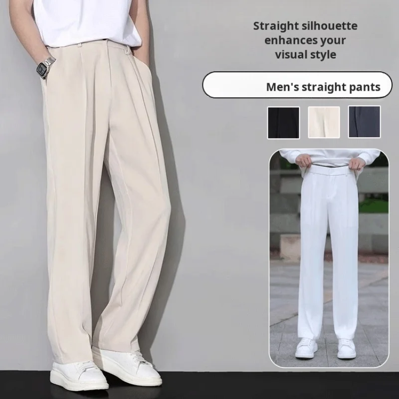 남성용 아이스 실크 스포츠 바지, 빠른 건조 스트레이트 레그 드레이핑 와이드 레그 팬츠, 캐주얼 롱 팬츠, 얇은 스타일, 여름 신상
