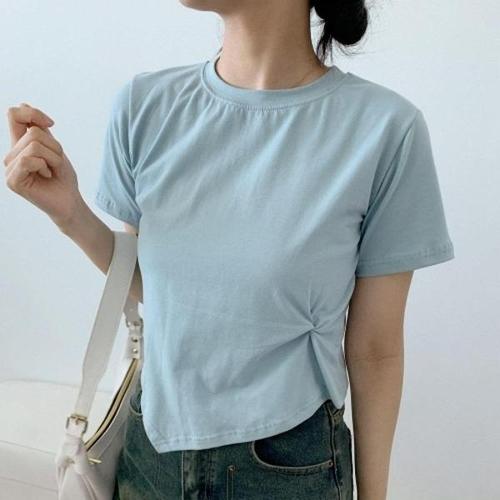 [브이와이][VY] 여자 트위스트 크롭티 하늘색 SS U넥 컷오프 티셔츠_17189896_588847