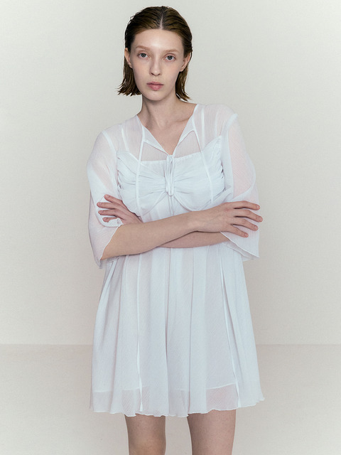 [노머] 스트랩 디테일 쉬폰 원피스 화이트