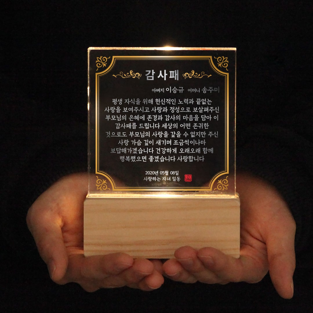 가정의달 부모님 감사패 감사장 상패 공로패 생신선물 어버이날 LED 충전식 무드등 주문제작