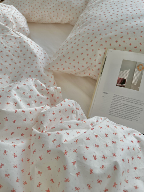 [아소브] 베리리본 60수 면100% 화이트 레드리본 이불커버