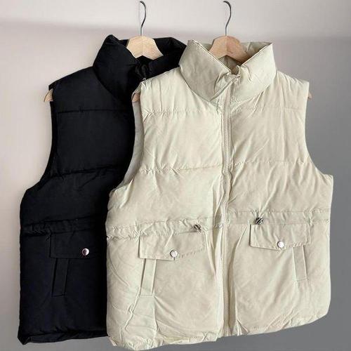 [신상오픈런]여자 푸퍼 스트링 포켓 하이넥 집업 겨울 패딩 조끼
