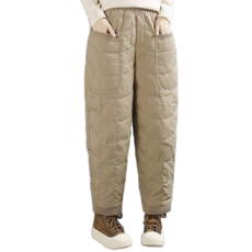 여성용 하이웨스트 누빔안감 팬츠 일상 솔리드 포켓 캐주얼 와이드 배기팬츠 Women's trousers