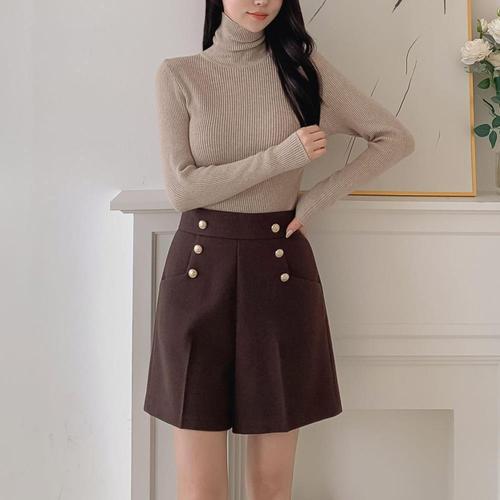 [다잇템]여자 FW 금장버튼 하이웨이스트 넓은 반바지