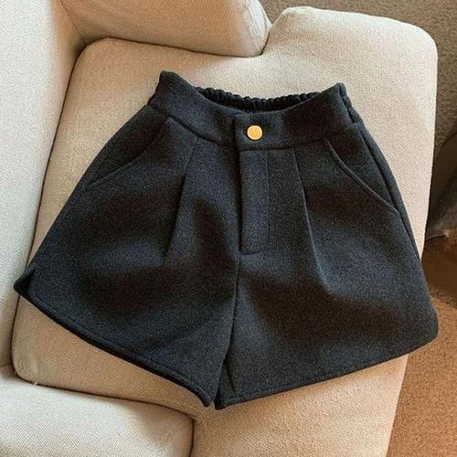 [셀러허브_여성트랜드패션]ONM 하이웨스트 뒷밴딩 반바지 금장버튼 모직반바지 핀