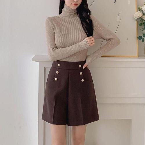 [옷자락] 여성 레이온 스판 무지컬러 모직 하이웨스트 숏 팬츠