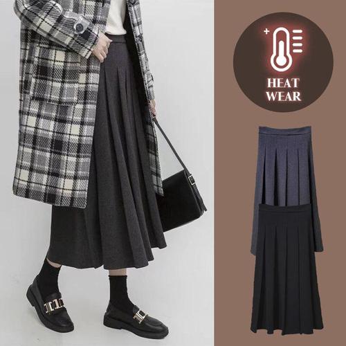 여성 데일룩 스커트 쉬폰 플리츠 모직 겨울 하이웨스트 슬림핏 A라인 롱 DAOL4