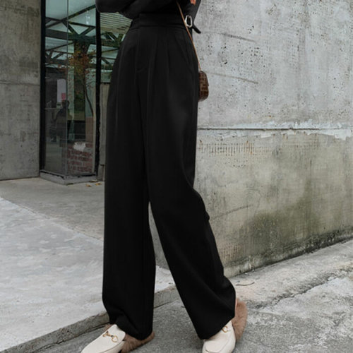 여성 프리미엄 수트 팬츠 오버핏 드레이피 핏 슬랙스 뱃살 커버 하이웨이스트