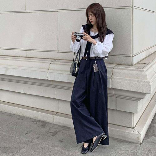 G125795 하이웨스트 멜빵 와이드 팬츠 정장 슬렉스