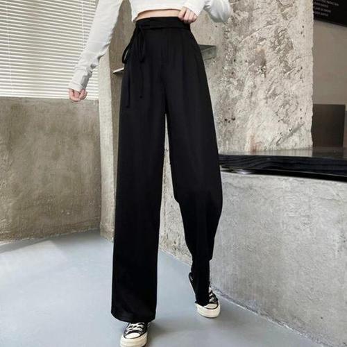 크로스보더 여성용 와이드 레그 팬츠 봄 여름용 뱃살 커버 적합 플러스 사이즈 하이웨이스트 드레이핑감 트렌디 양복 팬츠 빅사이즈 여성용 100kg까지 착용 가능
