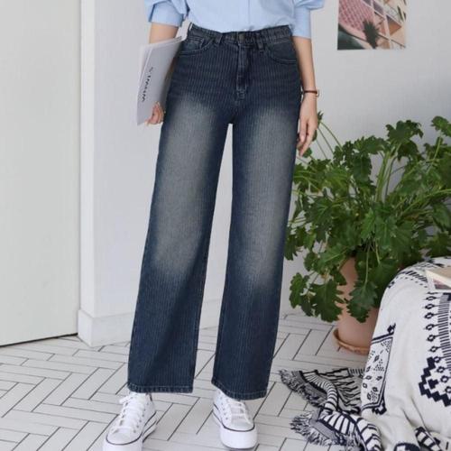 여자데일리룩 여성 하이웨스트 빈티지 일자 청바지 일자핏 데님팬츠