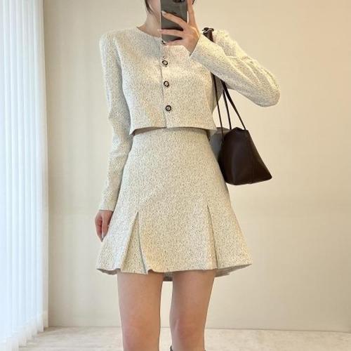 [다잇템][다잇템] 여자 치마 하이웨이스트 셋업 트위드자켓 탱크 세트_23765131_588872