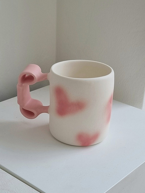 [들꽃세라믹] 무광 핑크하트 리본 빅머그