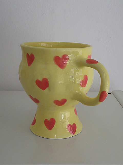 [들꽃세라믹] 핑크하트 노랑 고블렛잔