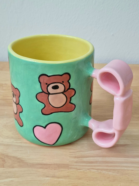 [들꽃세라믹] 곰돌이 하트 리본 빅머그