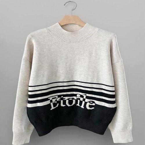 [다잇템]여성 하프 빅사이즈 모크넥 필기체 단가라 니트