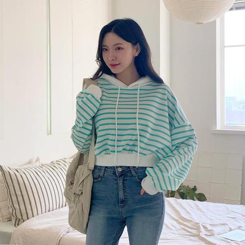 여자 캐주얼 학생룩 단가라 배색 크롭 티셔츠