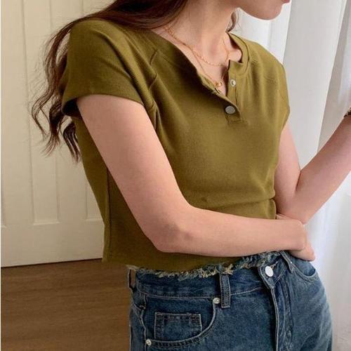 [셀러허브_여성트랜드패션]ONM 여성 여름 골지 쿨원단 크롭반팔티 크롭티셔츠 학생티