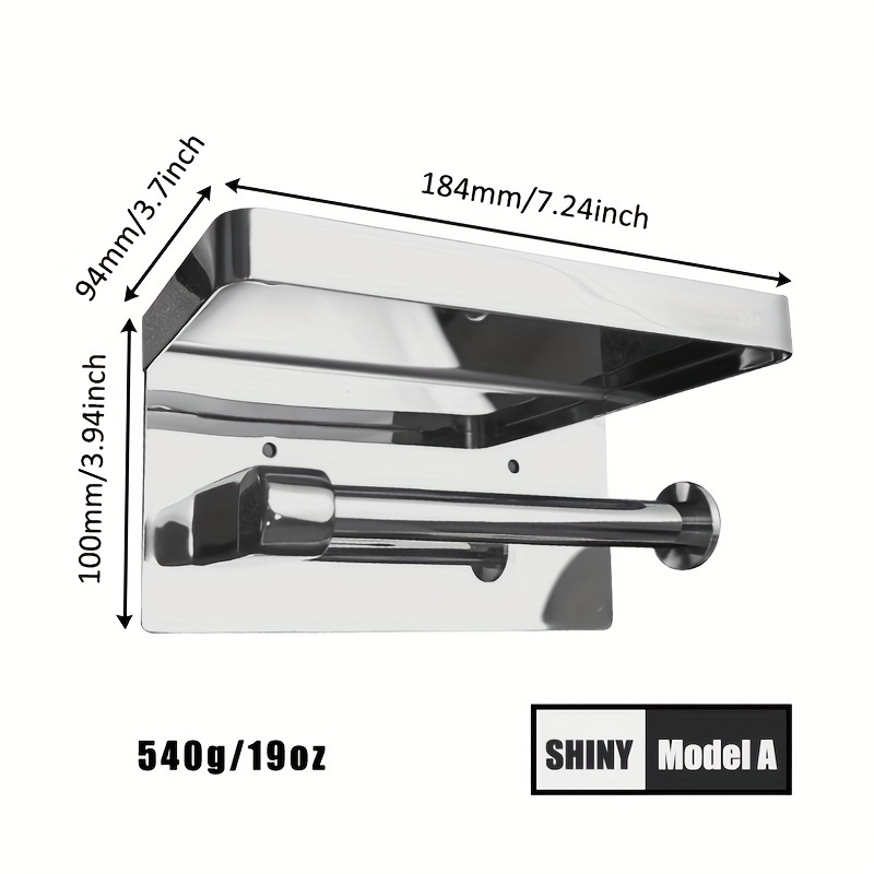TEMU 1개 스테인리스 스틸 화장실 휴지 거치대, 선반 및 후크 포함, 내구성 있는 304 스테인리스 스틸, 광택 거울 마감, 벽걸이형 욕실 정리함, 세련된 디자인, 독특한 입자 패널, 시계줄 및 향수병 공간 포함, 욕실 액세서리 | 광택 마감 | 스테인리스 스틸 구조, 욕실 수납