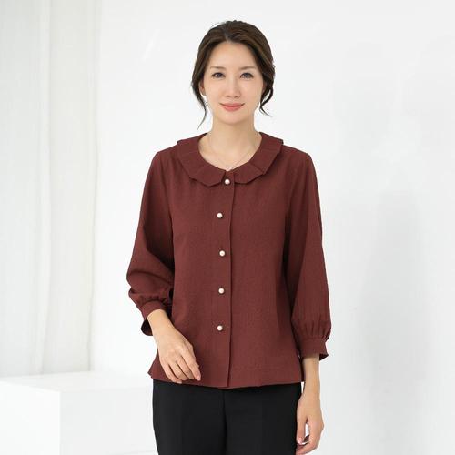[모슬린]엄마옷 카라 반오픈 블라우스 MQG126437 마담 미시 중년여성 빅사이즈 할머니옷 50대 60대 70대