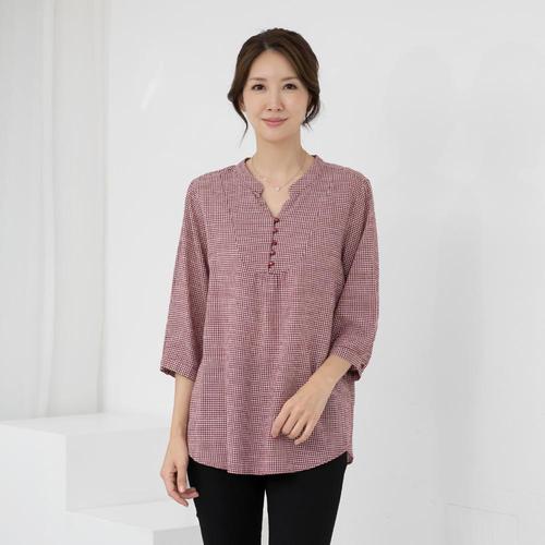 엄마옷 라운드 브이 체크 면7부블라우스 613BNM625 중년여성/50대/60대/마담/빅사이즈/할머니옷