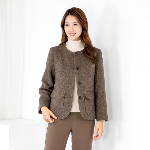 엄마옷 울모직 라운드 헤링본 자켓 511BMN130 중년여성/50대/60대/마담/빅사이즈/할머니옷