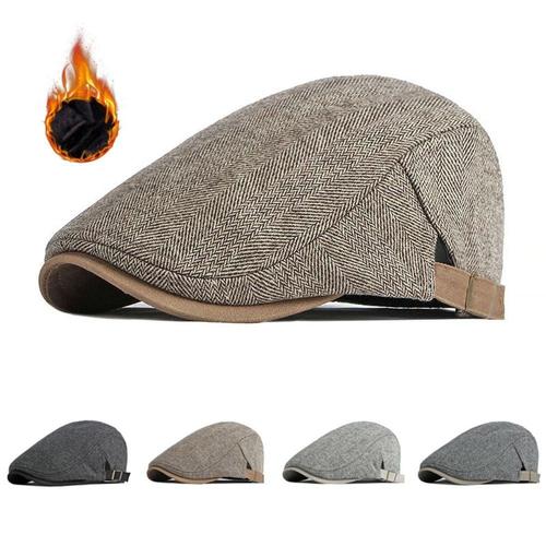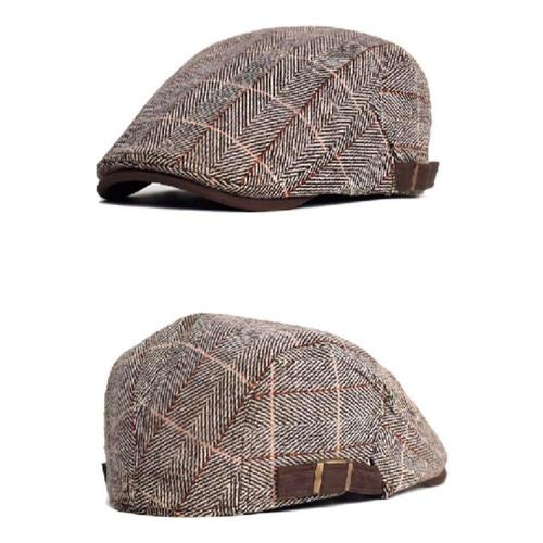 남성 체크 헌팅캡 모자 할아버지 겨울 울 중년 베레모 WFG21QR