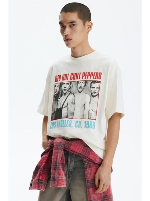 [에이치엔엠] 오버사이즈핏 티셔츠 크림색/레드 핫 칠리 페퍼스 1159823103