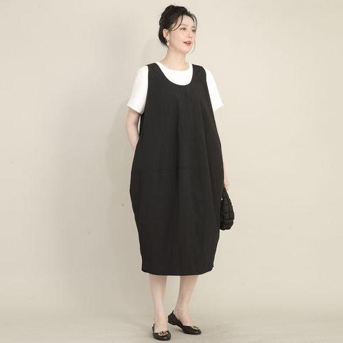 여성 라운드넥 반팔 루즈핏 항아리 원피스
