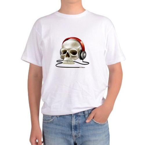[에이치플러스몰]반팔 라운드티 헤드폰 해골 skull 뮤직 music