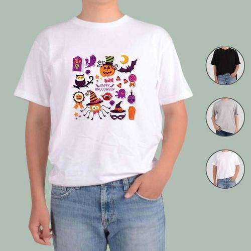 [에이치플러스몰]반팔 라운드티 할로윈 해골 박쥐 사탕 별