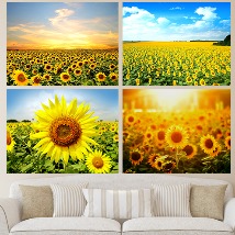 비오테왈 해바라기 캔버스 월 아트 데코 4피스 일몰 풍경화 프린트 옐로우 플라워 액자 그림 식물 필드