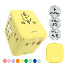 루베아 45W 해외 여행용 초고속 충전 5포트 멀티 어댑터, 1세트, 레몬 옐로