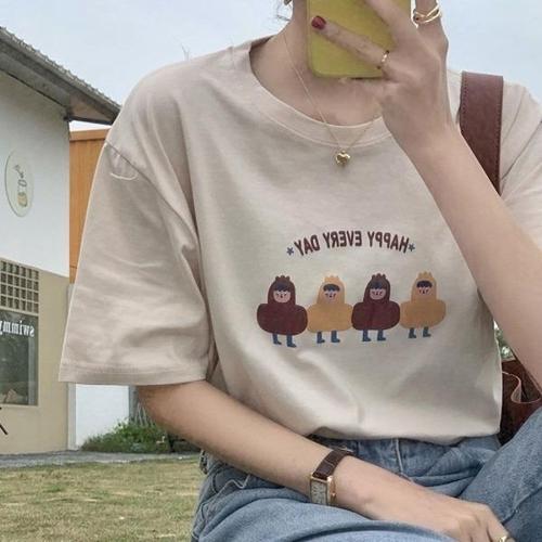 [엄지척]여자 해피 에브리 데이 박스 반팔 티셔츠 여름 캐주얼_19612727_667501