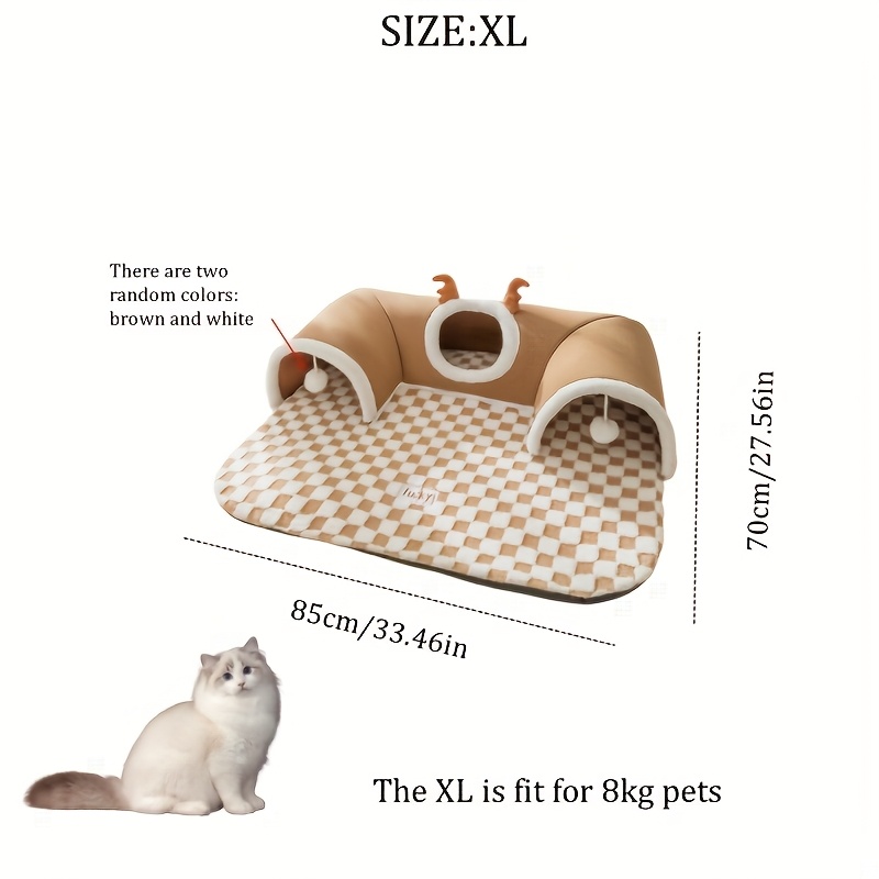 TEMU 3-in-1 고양이 터널 & 침대 - 미끄럼 방지 바닥, 쉬운 조립, 분리 가능한 디자인, 소형~중형 고양이, 토끼, 햄스터용 - 부드러운 폴리에스터 원단, 7kg 용량, 작은 고양이용 캣베드, 토끼 침대, 재미있는 펫 가구, 플러시 펫 가구