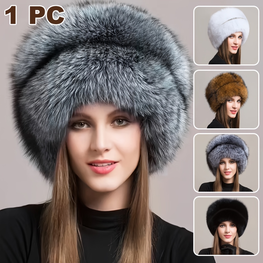 TEMU 고급 패션 여성용 퍼리 모자 | 두꺼운 따뜻한 브라운 모자, 자카드 장인 정신, 스냅 클로저, 이상적인 크리스마스 선물