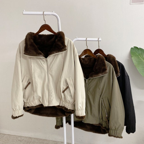 허니제이 / 뮤베 보들 하프넥 에-코 밍크퍼 자켓(2color)