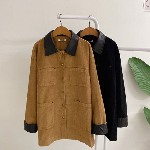 허니제이 / 퓨리츠 코듀로이 레더 카라 루즈핏 포켓 자켓(2color)