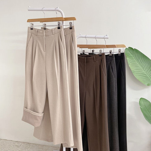 허니제이 / 4사이즈 아르디 모직 일자 와이드 뒷밴딩 팬츠(2color)