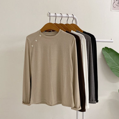허니제이 / 케니아 어깨 단추 스판 라운드 티셔츠(5color)