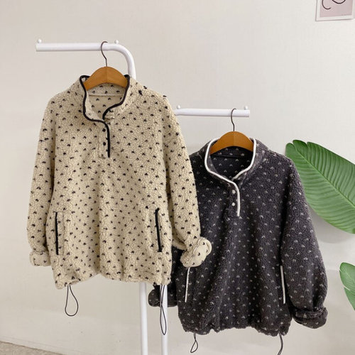 허니제이 / 아비즈 하이넥 버튼 스트링 포켓 양털 후리스 티셔츠(2color)