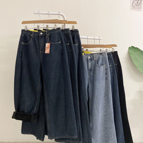 허니제이 / 2가지길이 필리드 기모 사이드 절개 와이드 데님 팬츠(3color)