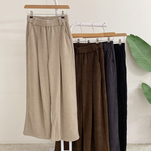 허니제이 / 2가지길이 톤브 융기모 코듀로이 핀턱 와이드 밴딩 팬츠(3color)