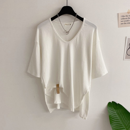 허니제이 / 메릴쇼 하프 브이넥 스판 트임 박시핏 반팔 롱 티셔츠