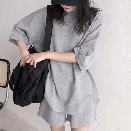 [셀럽하우스]심플 IZJK5375 라운드넥 반바지 세트 허리밴딩 홈웨어