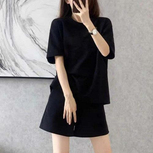 [셀럽하우스]심플 EXXT3124 디자인 허리밴딩 데일리 무지 반팔 반바지 셋업