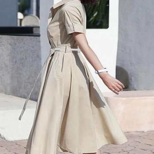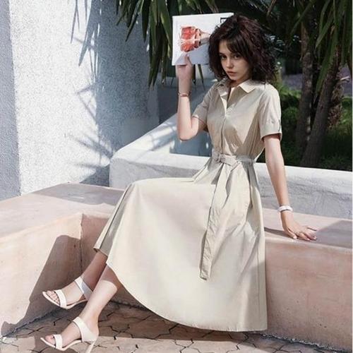 [엄지척]여성 여름 셔츠형 원피스 단정 허리 벨트 미디원피스_19914390_667501